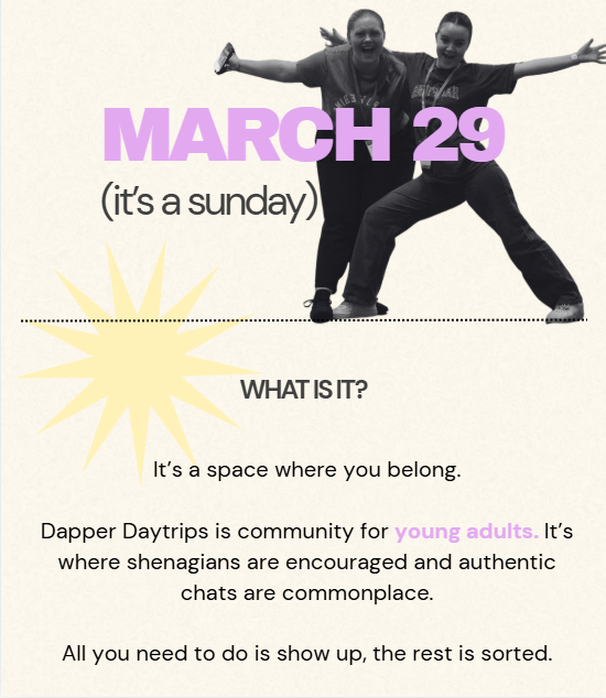 Dapper Daytrips are created by young adults, for young adults, offering a variety of day trips for young adults throughout the year. Each trip features different locations and activities, but all share a common goal: creating a welcoming space where you can share the highs and lows of young adulthood. Whether you prefer chatting over tea and cake or engaging in more adventurous activities, there’s something for everyone.
